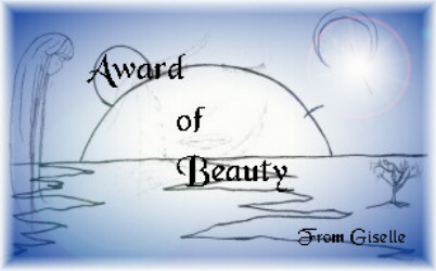 Oftentimes, I come across a blindingly beautiful sight, and I am unable to express what I want to say with an adequate eloquence. Now, I can confer upon distingiushed individuals this award, hand drawn by myself. I surf the net often and may present this award as I see fit, but if you think yourself worthy of this Award for Beauty please fill out this form.